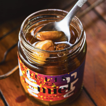 Ajos fermentados en miel, ideal para activar sistema inmune, desparasitar y combatir procesos infecciosos. Pero también sirve para condimentar pizzas, carnes, ensaladas y mucho más!